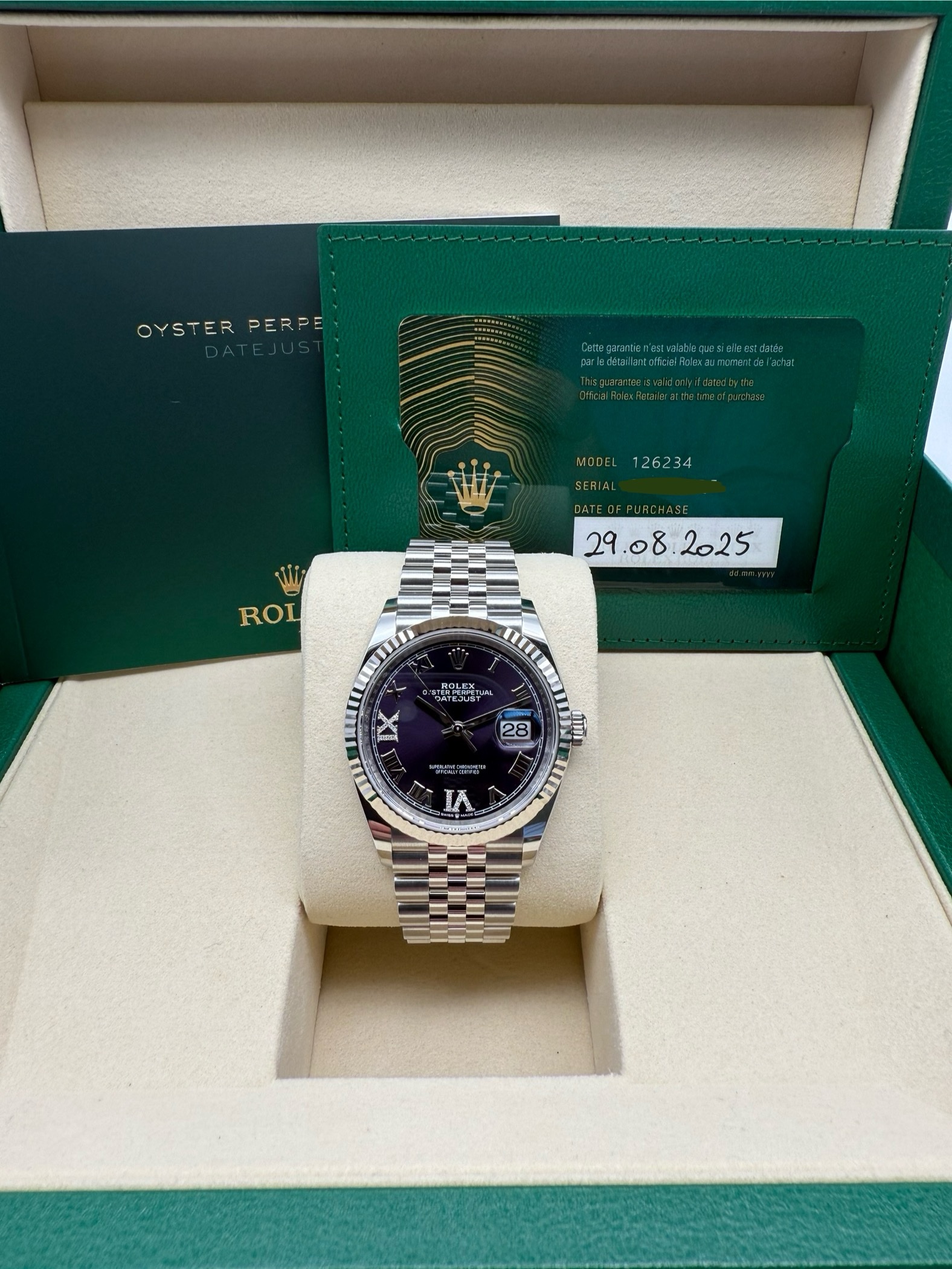Rolex Datejust Aubergine 126234 New Purple Diamonds 2025