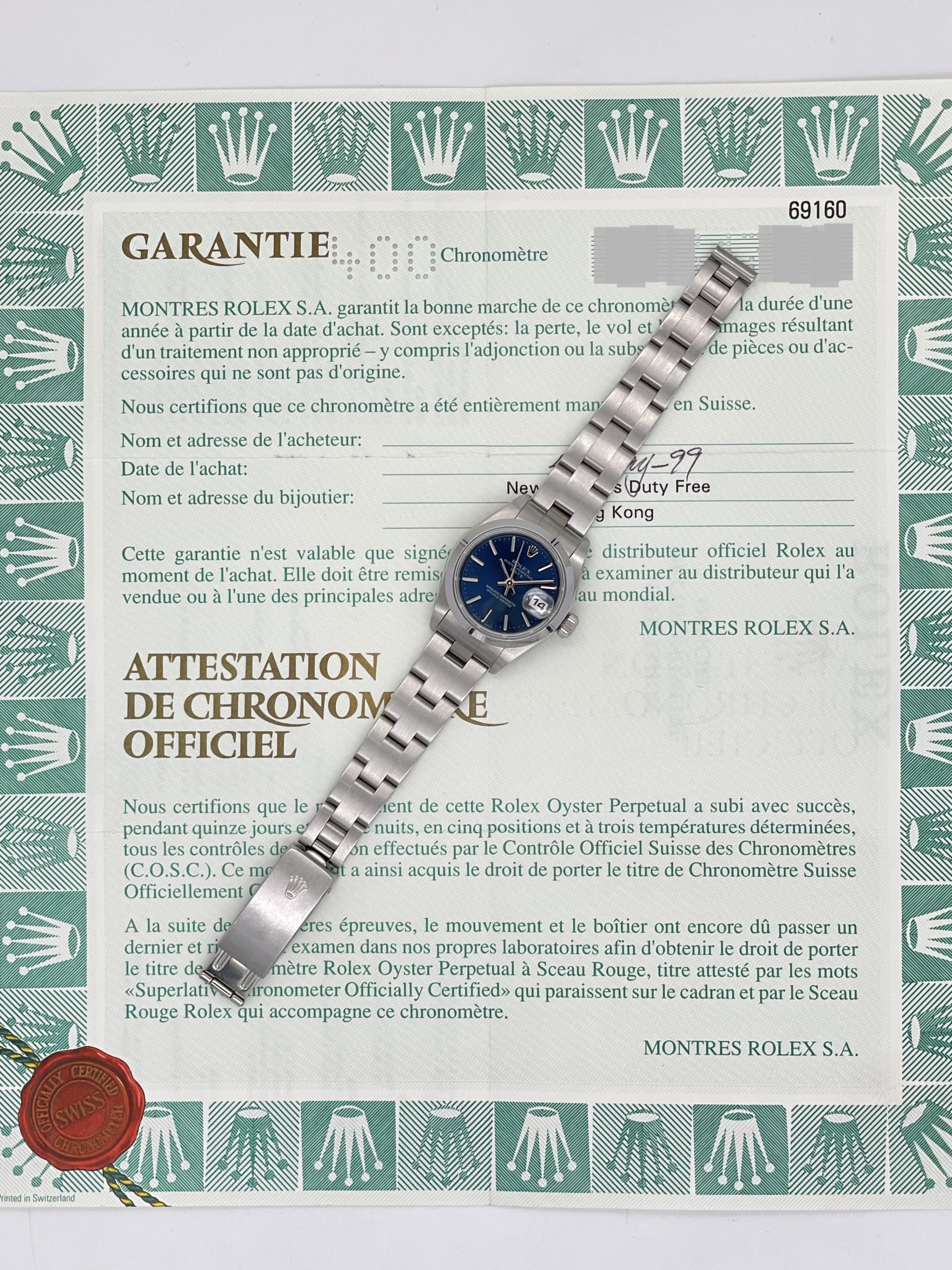 Rolex Lady-Datejust 69160 Dial Blue Full Set Box & Papers + Service Ufficiale 2019