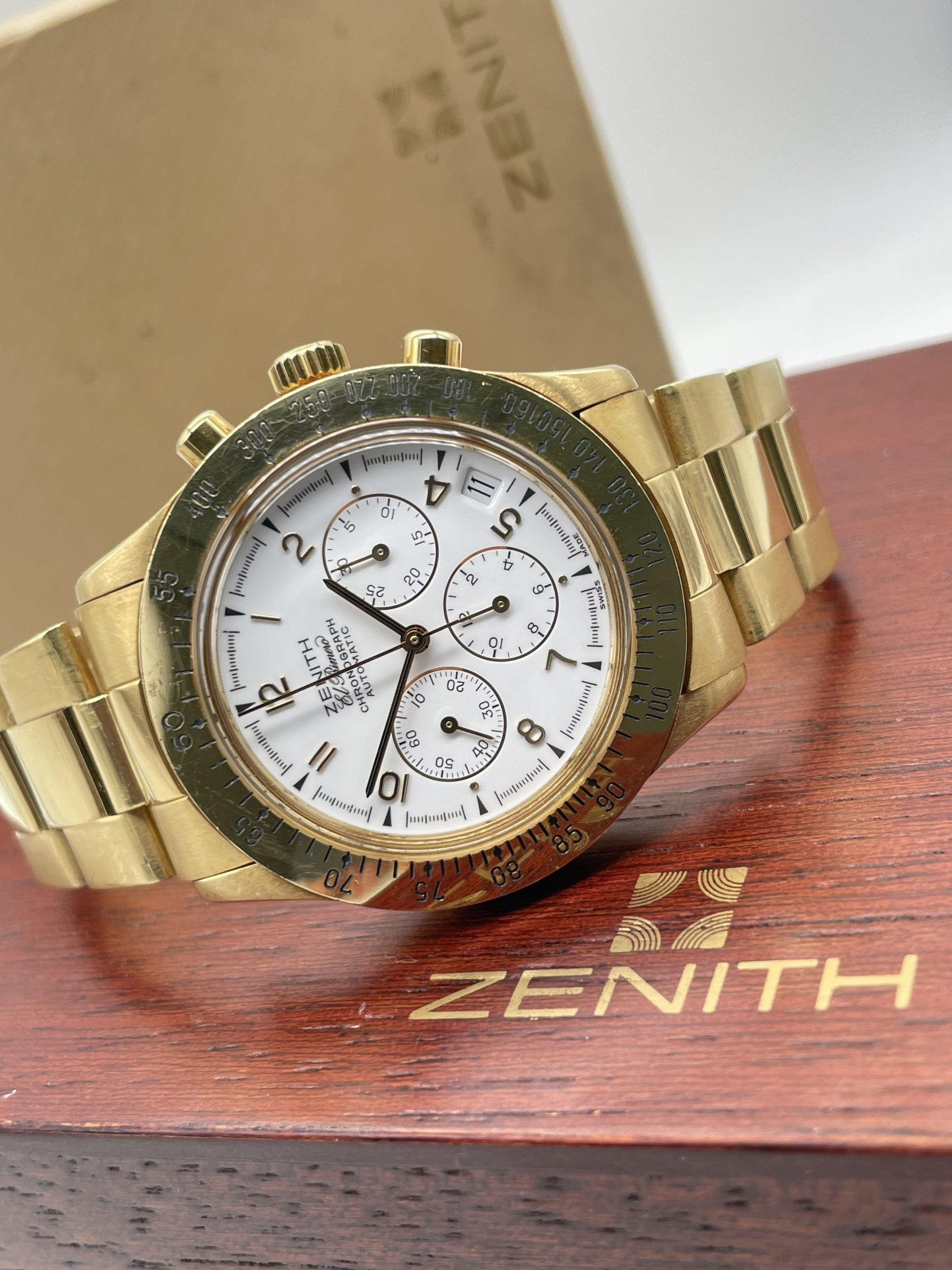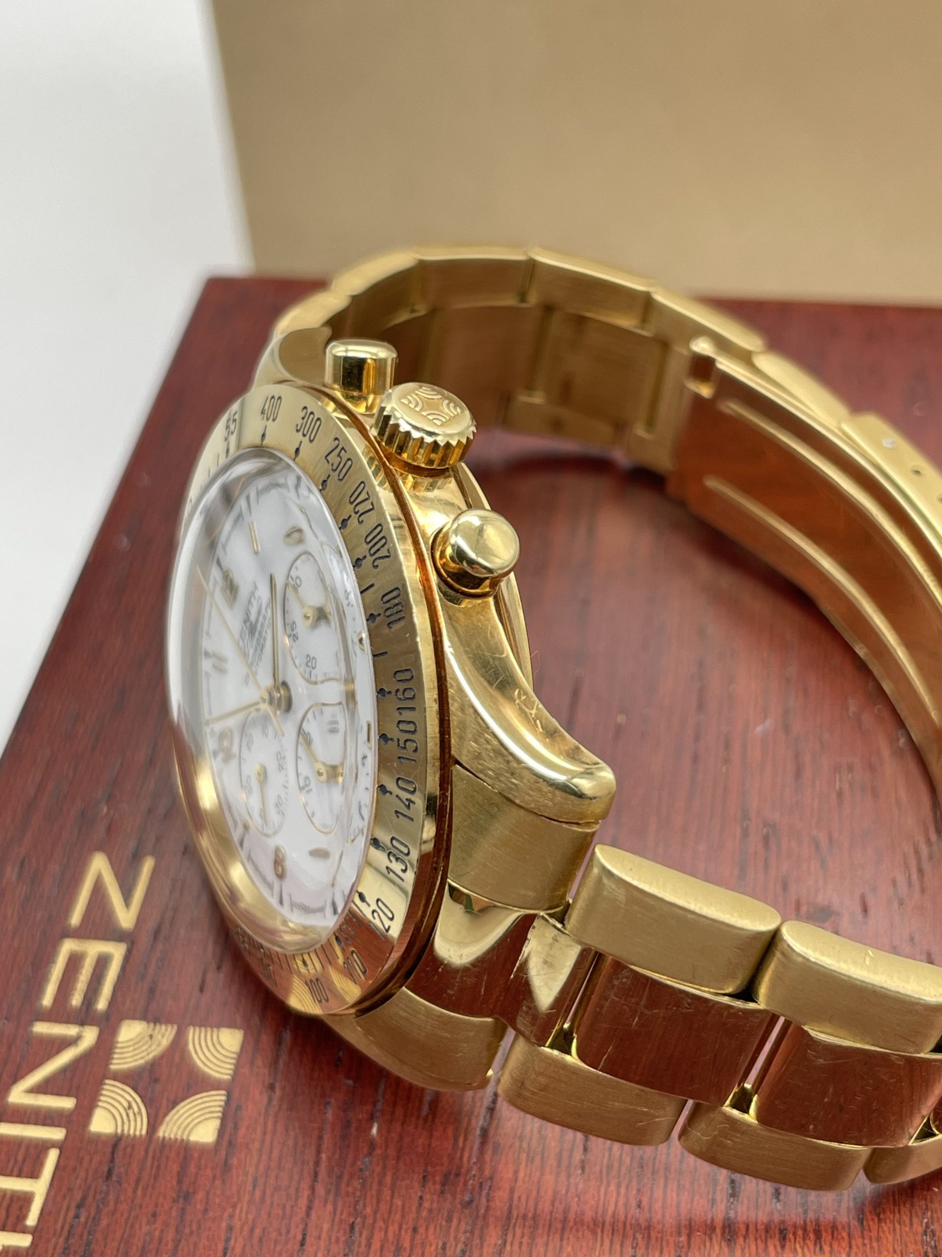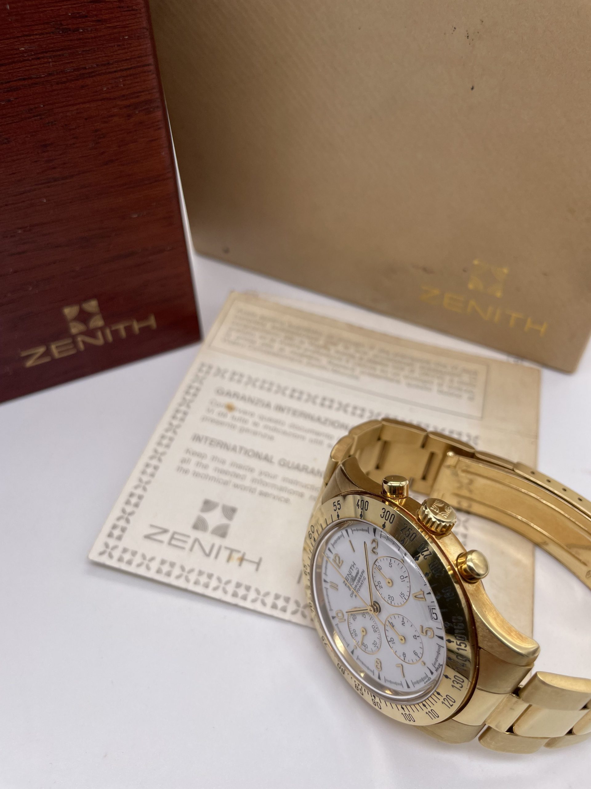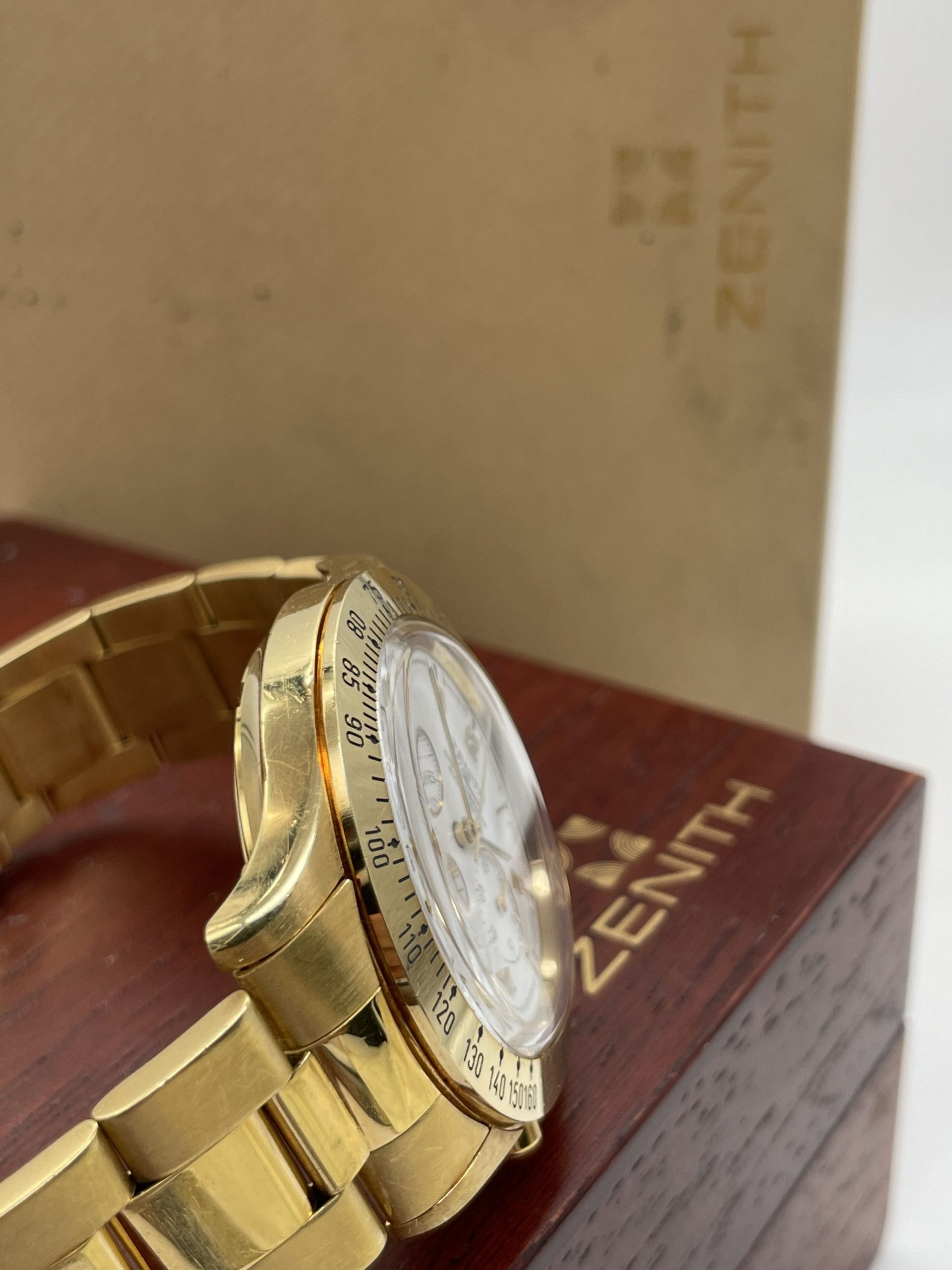 Zenith El Primero Chronograph from ’80 years Full Gold Full Set Never Polished!