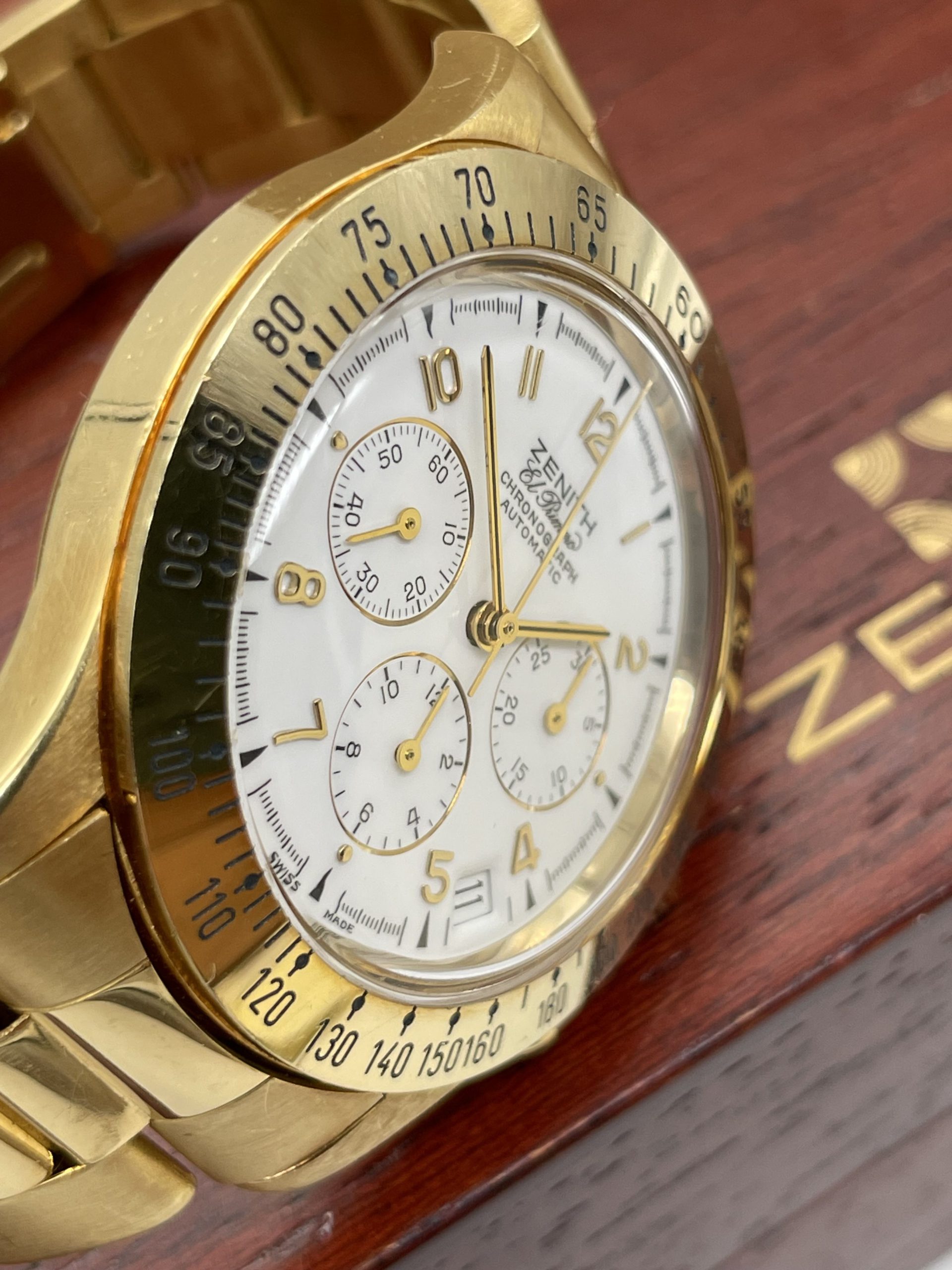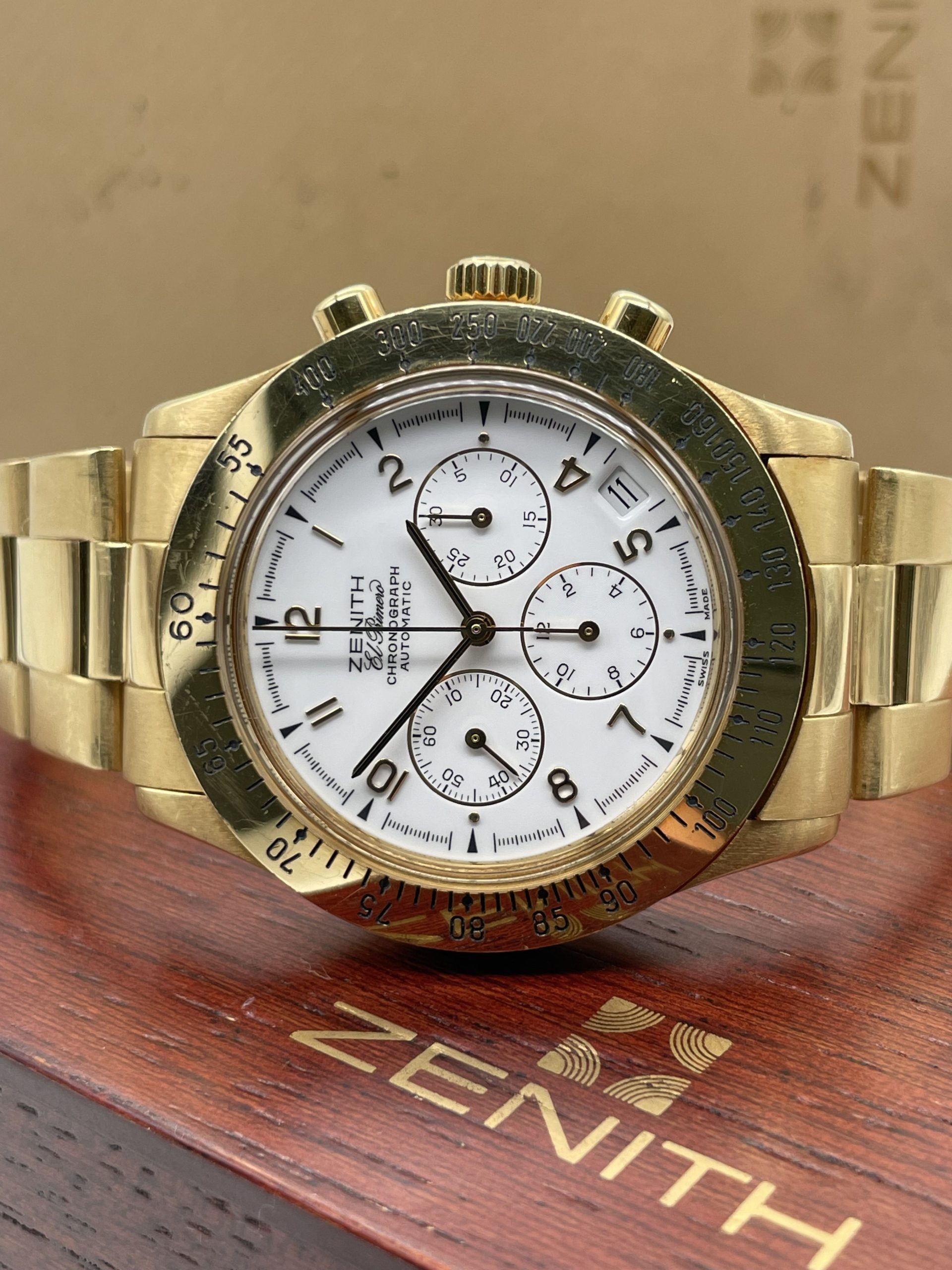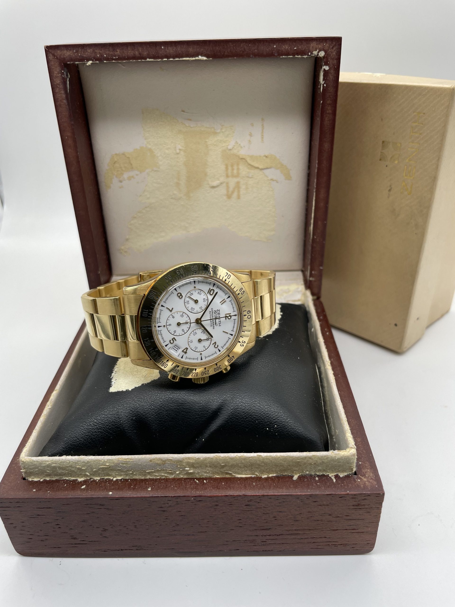 Zenith El Primero Chronograph from ’80 years Full Gold Full Set Never Polished!