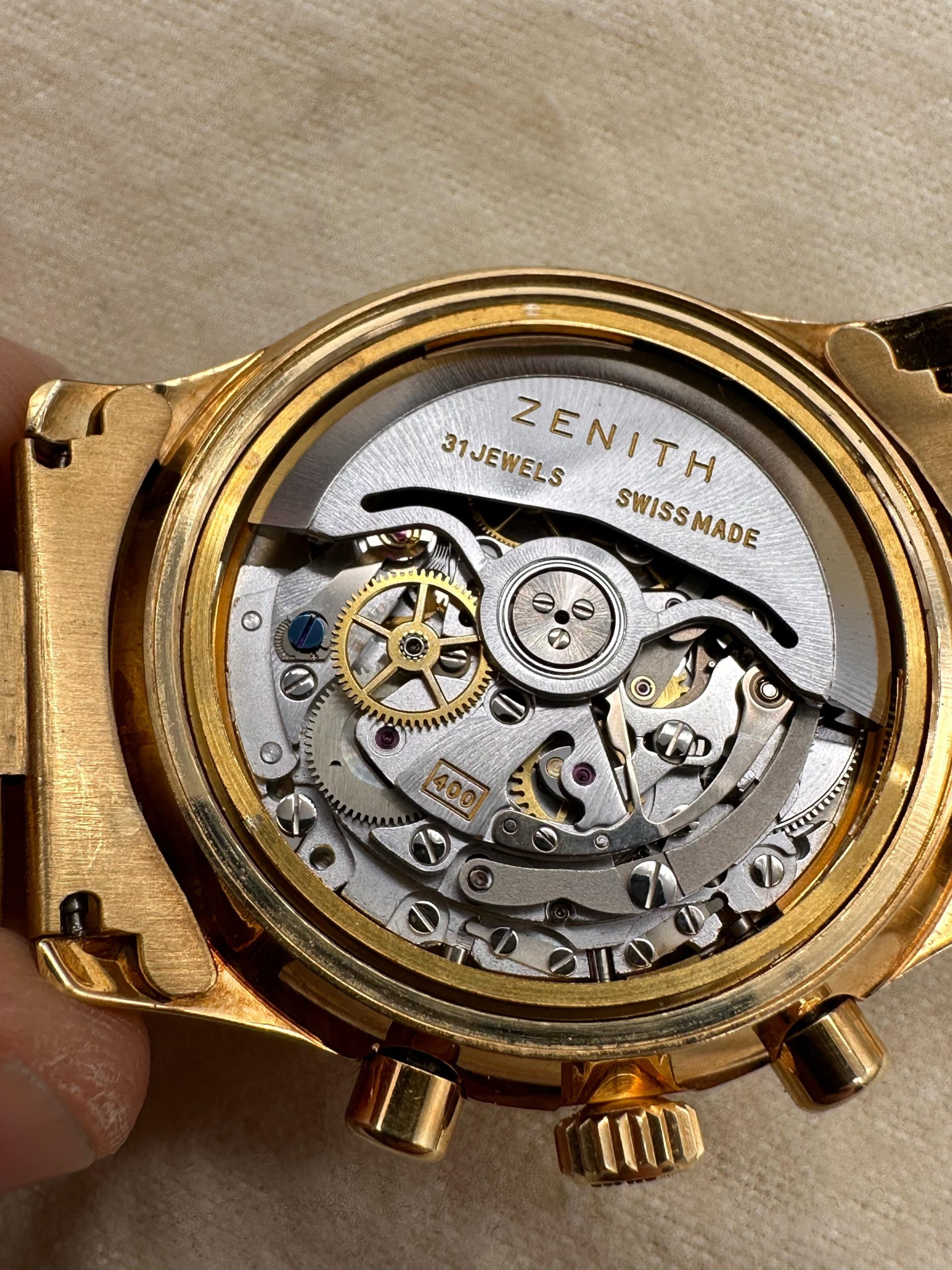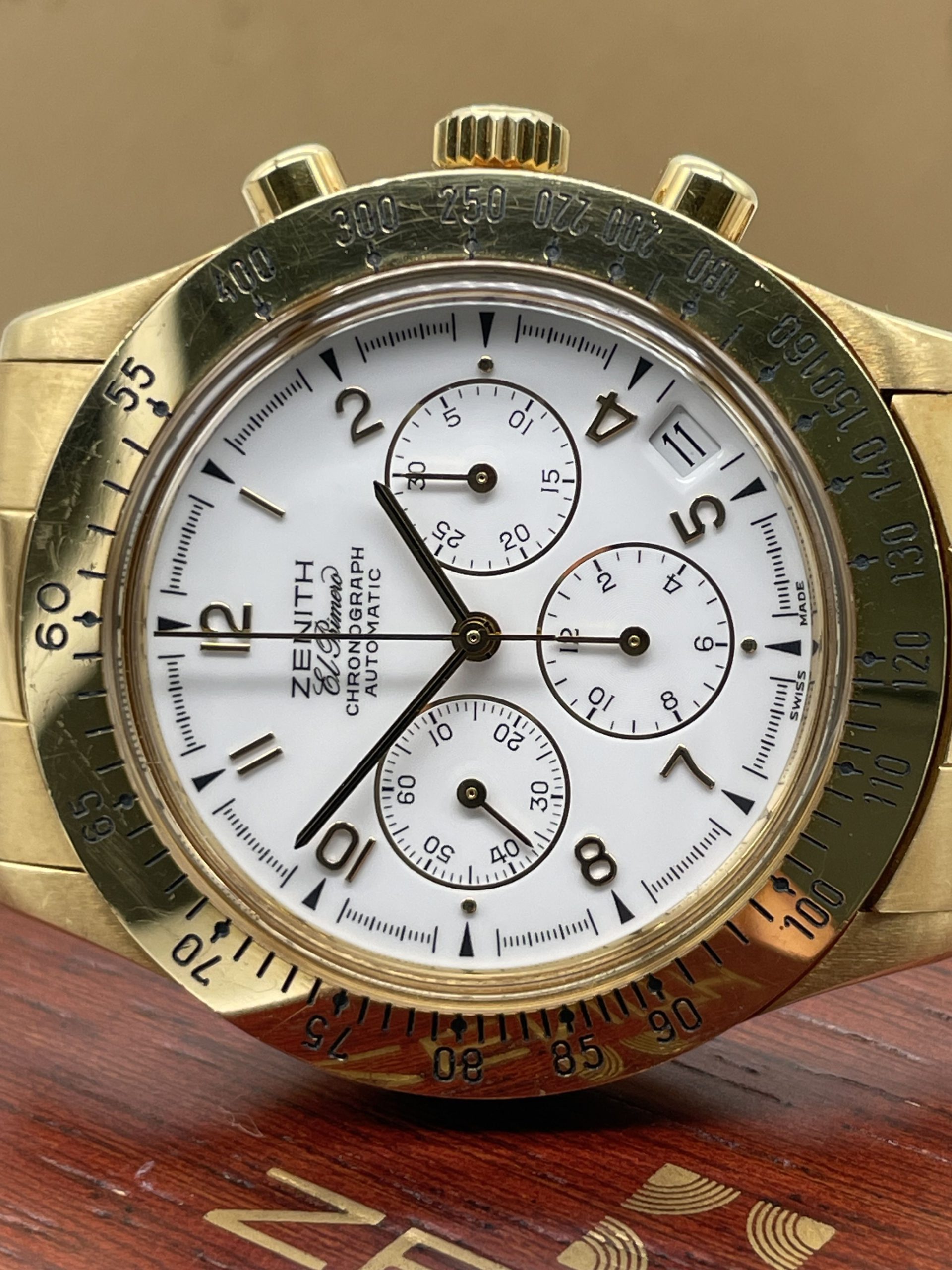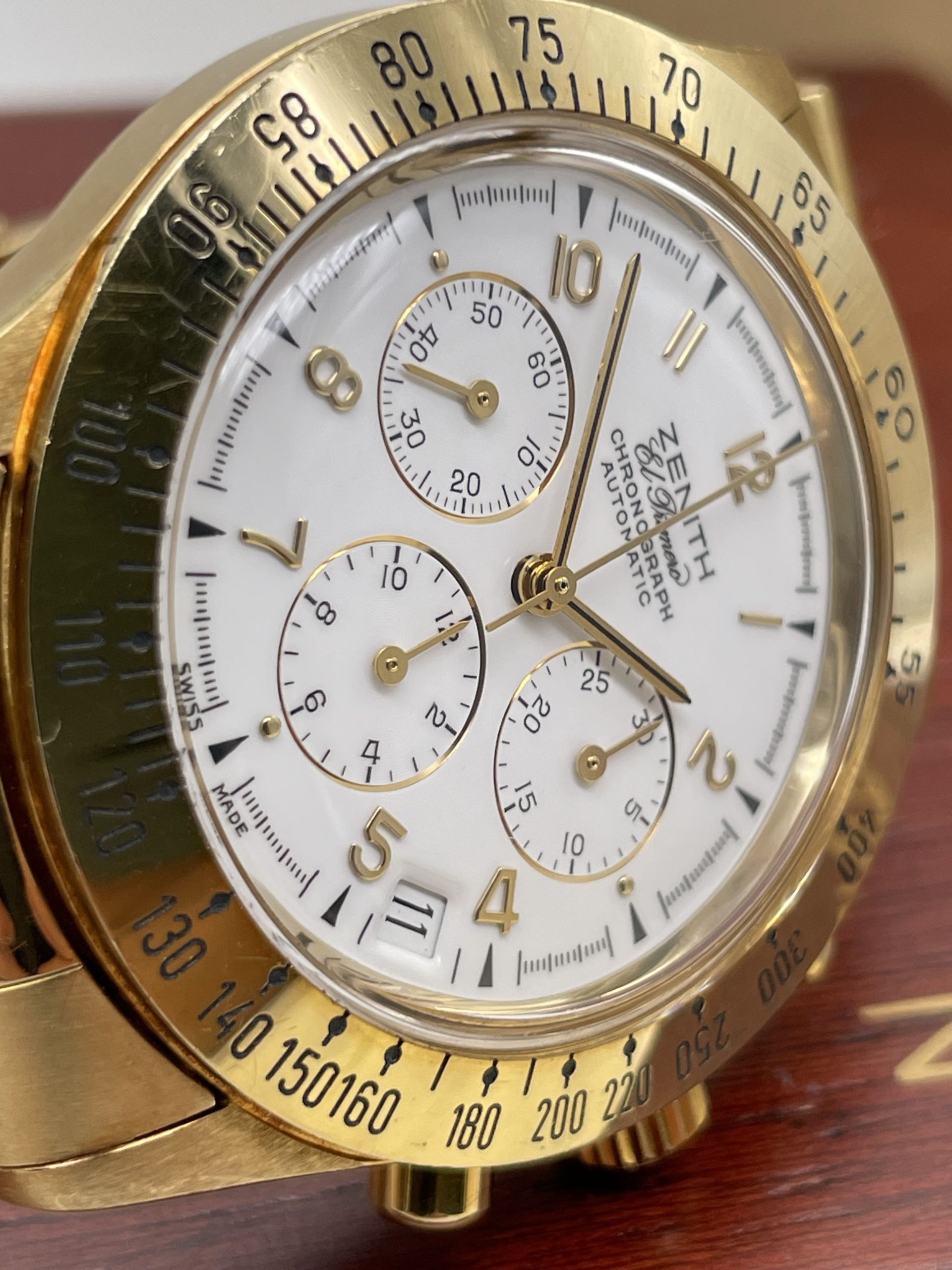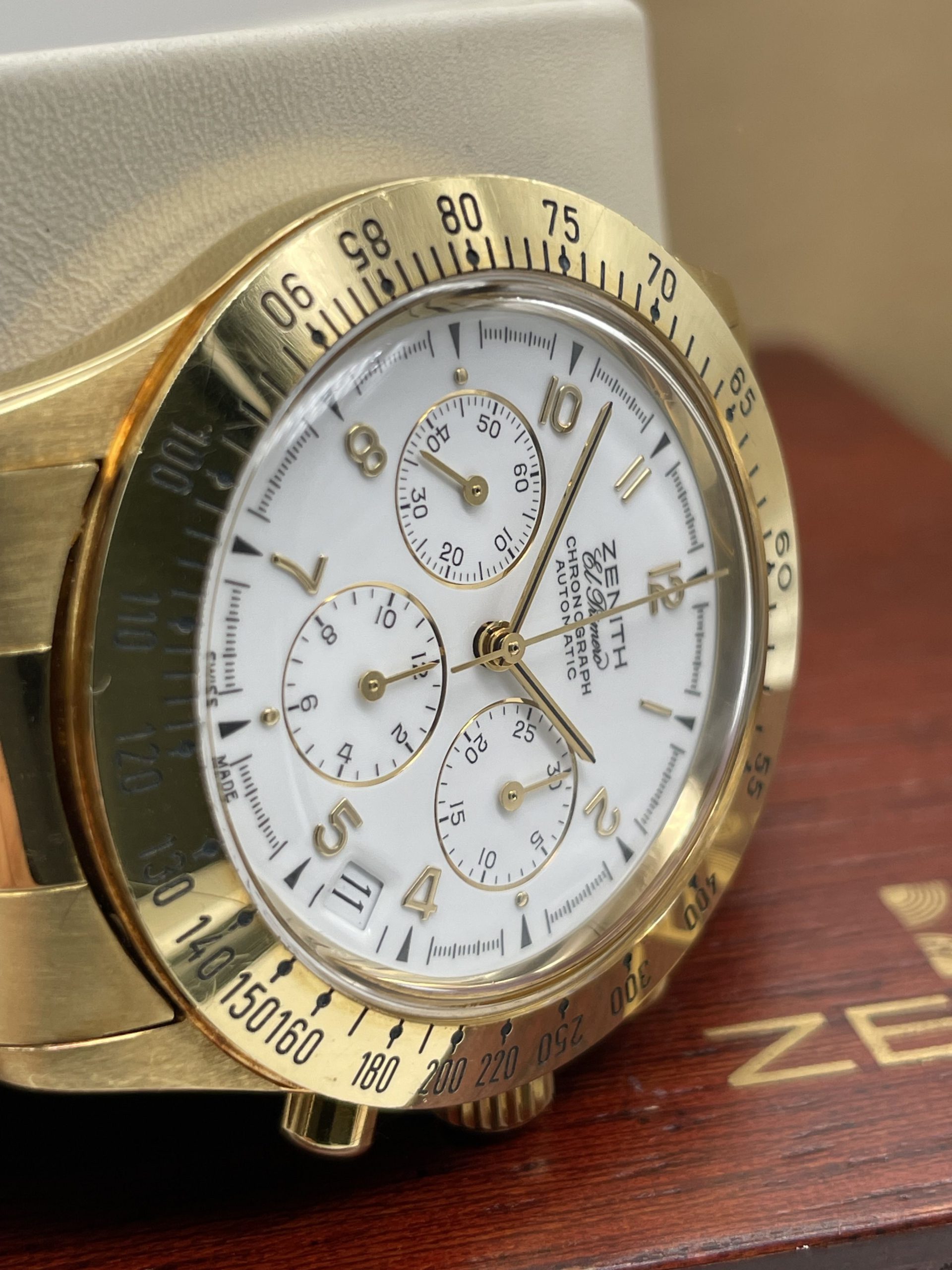 Zenith El Primero Chronograph from ’80 years Full Gold Full Set Never Polished!